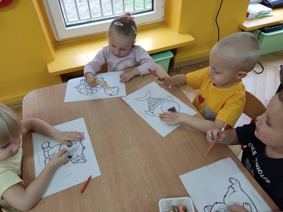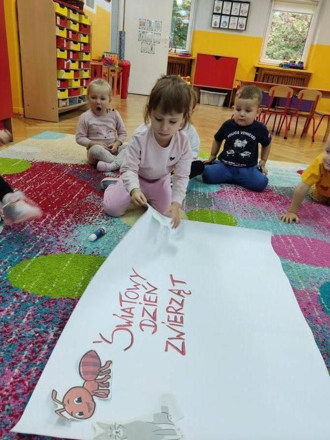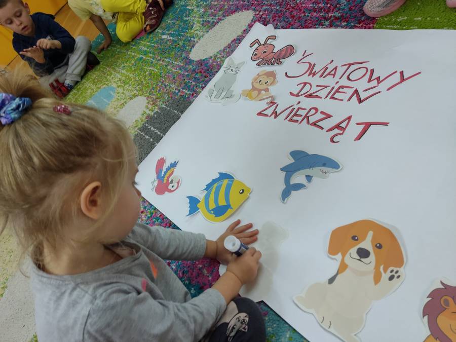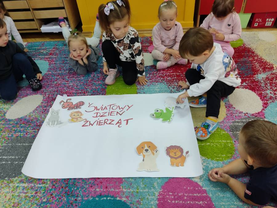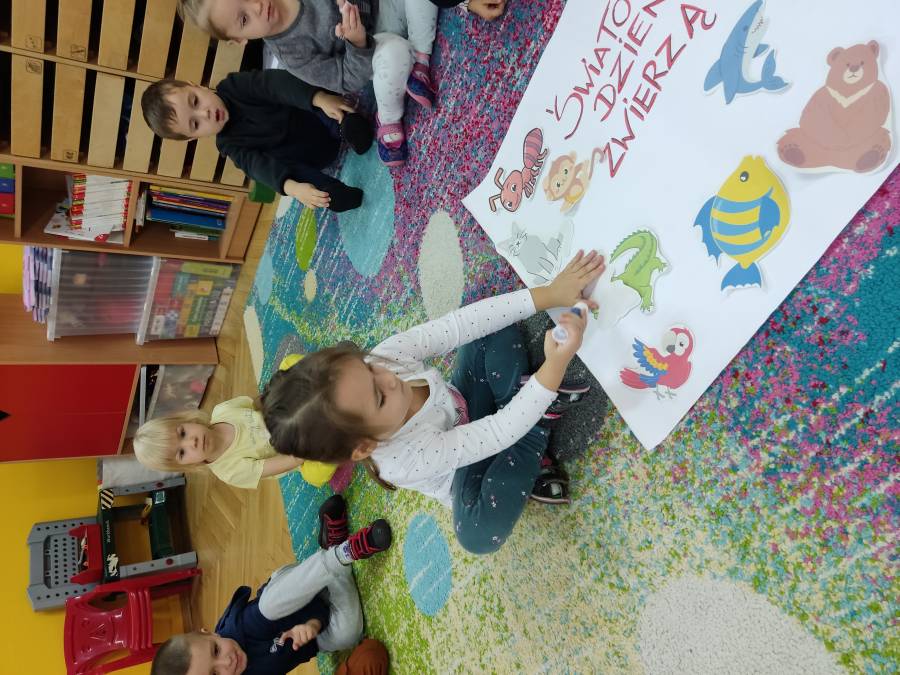 Dziś w grupie maluszków obchodziliśmy nietypowy dzień: Światowy Dzień Zwierząt, wykonaliśmy plakat, bawiliśmy się w naśladowanie różnych zwierząt oraz kolorowaliśmy różne szablony.Kochajmy wszystkie zwierzaki.
