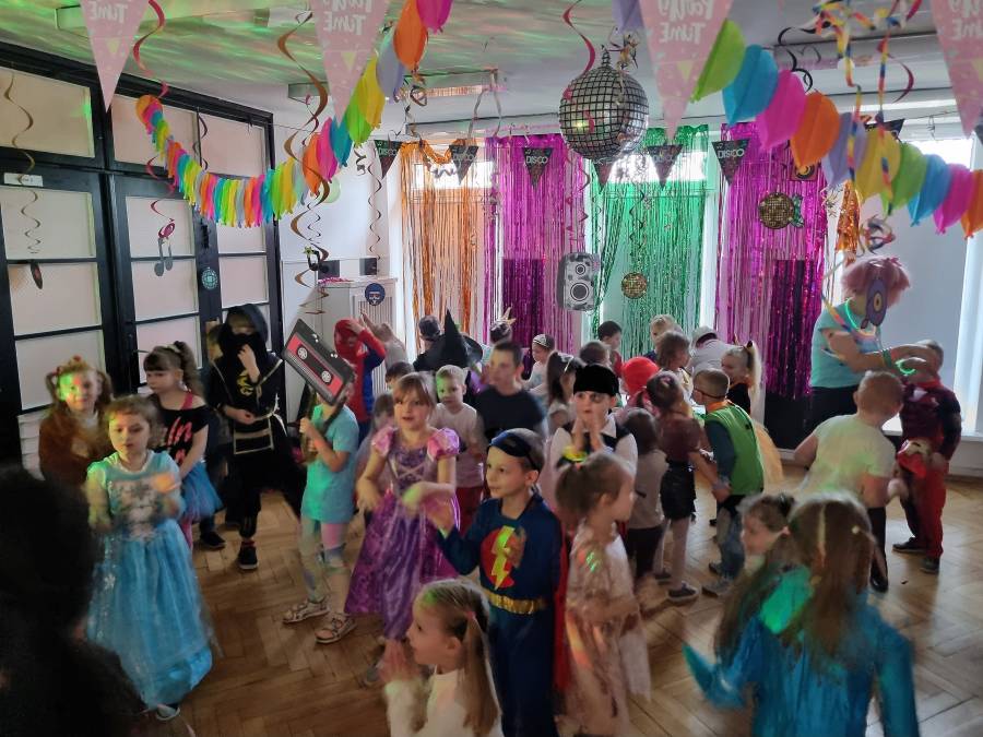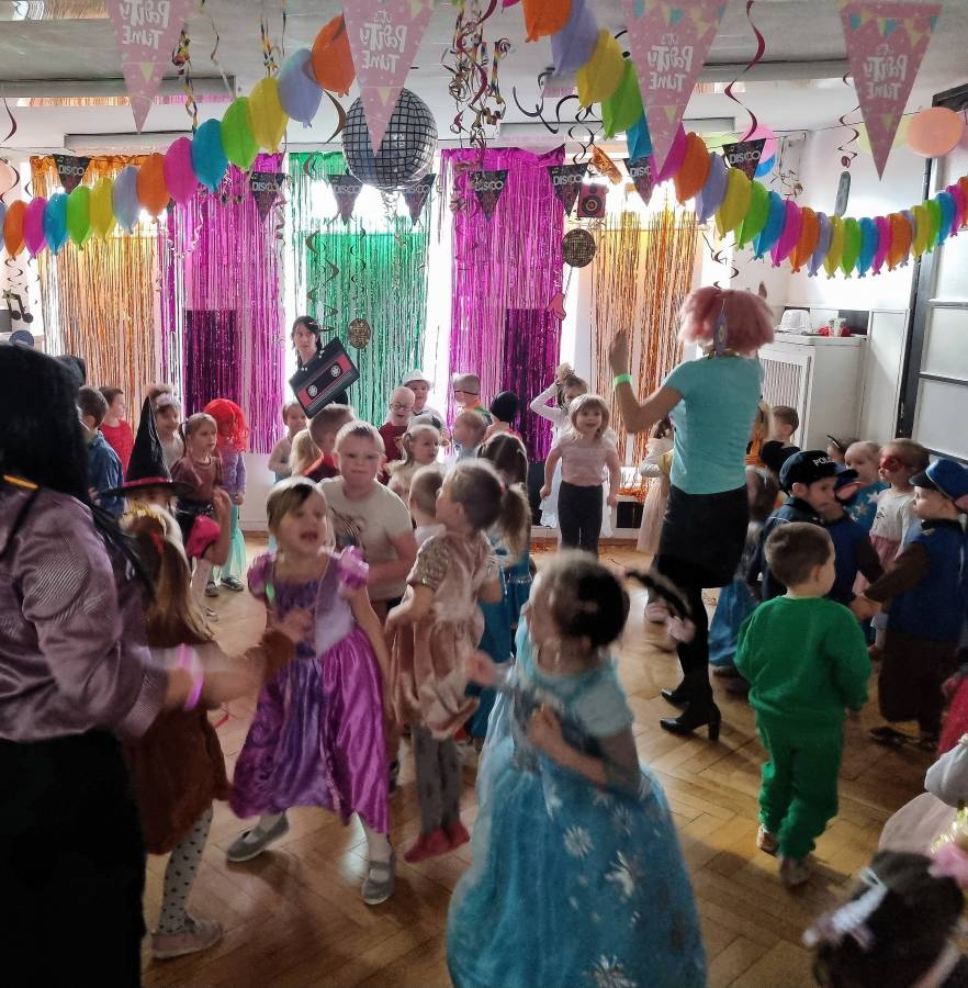 W lutym nasze przedszkolaki świetnie bawiły się na disco balu w pięknych karnawałowych strojach. Było dużo radości i pamiątkowych zdjęć.