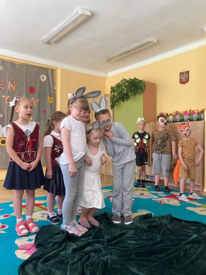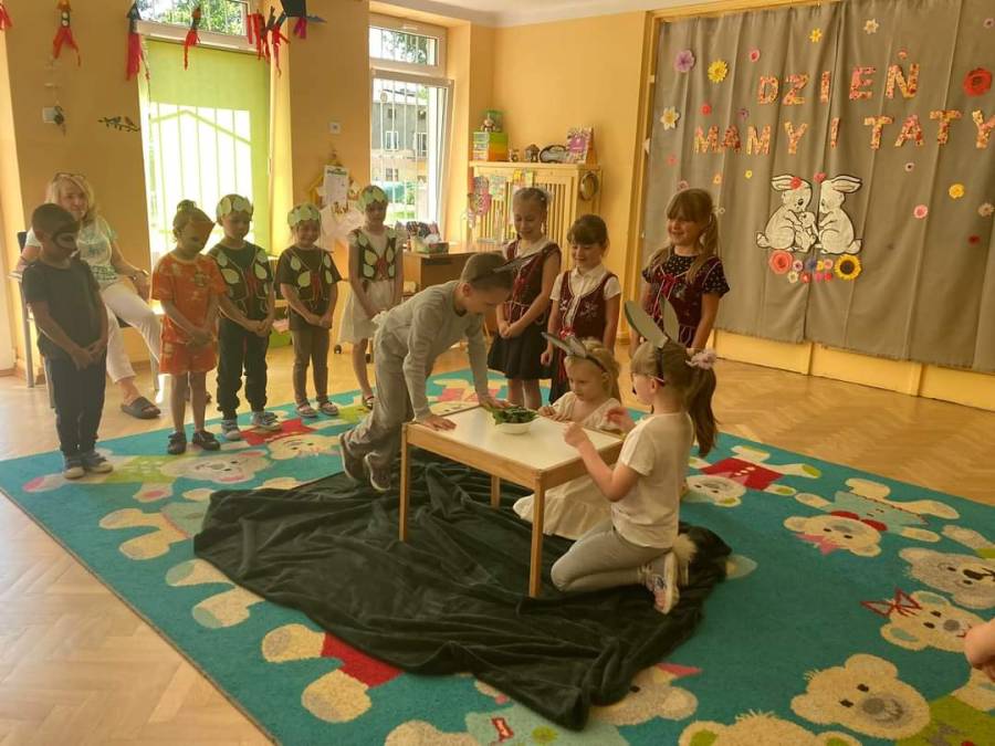 U starszaków to był ostatni Dzień Mamy i Taty w przedszkolu.Krótkie ale jakże znaczące przedstawienie z piękną myślą -Bo z rodziną się kica, naj najlepiej na świecie.