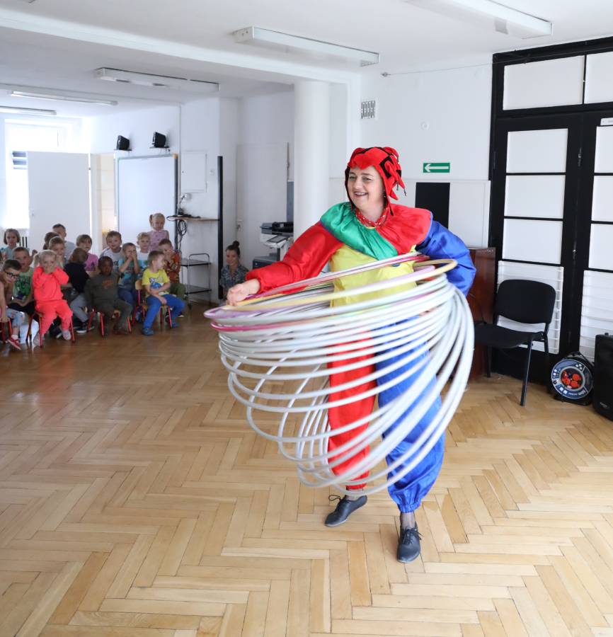 W te wakacje gościliśmy w przedszkolu cyrk O'Bimbolando. Wszystkie dzieci z zapartym tchem śledził pokaz artystów, którzy zaprosili także nasze przedszkolaki i panie do wspólnych występów. To był kolejny miły, pełen atrakcji dzień w Dwójeczkach.