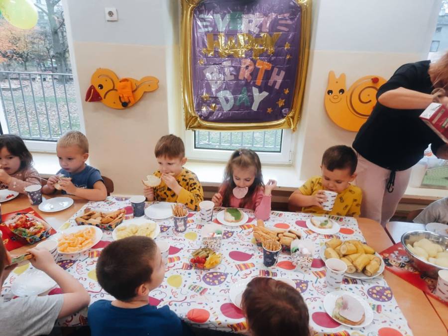 Dzień urodzin naszych przedszkolaków to bardzo ważne święto, które wspólnie celebtujemy całą grupą. W październiku urodziny obchodzili: Mateusz i Lena z grupy Zwinne Koty oraz Idalka z Kumatych Żab. Sto lat dzieciaczki.