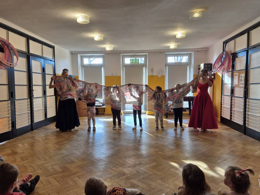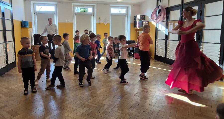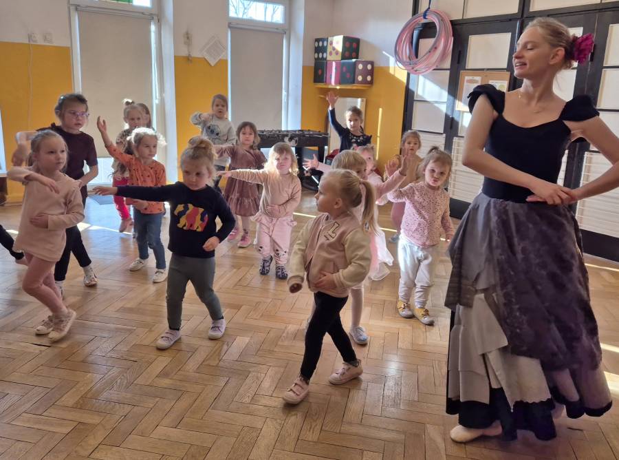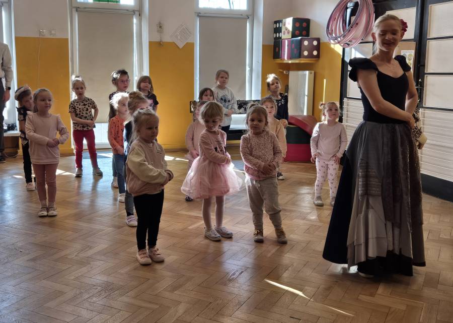 Dziś w przedszkolu odwiedził nas balet z tańcami z różnych stron świata. Dzieci chętnie uczestniczyły w zajęciach i uczyły się tańczyć. Zajecia były dobrą inspiracją na stworzenie rysunku przez Żabkę Zuzę.