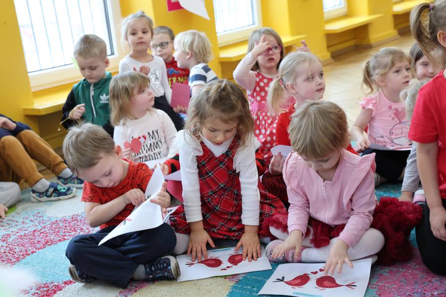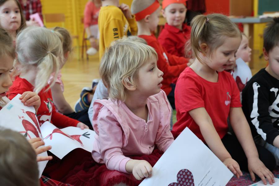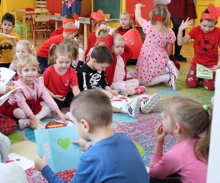 Dziś w naszym przedszkolu odbyły się radosne obchody Walentynek. Dzieci wzięły udział w zabawach związanych z tym wyjątkowym dniem. Było dużo uśmiechu, serduszek i miłych gestów. Panie rozdały kartki z walentynkowej poczty, było ich mnóstwo, a na obiad czekała nas walentynkowa niespodzianka. To była świetna okazja do nauki o przyjaźni, życzliwości i dzieleniu się radością z innymi.
