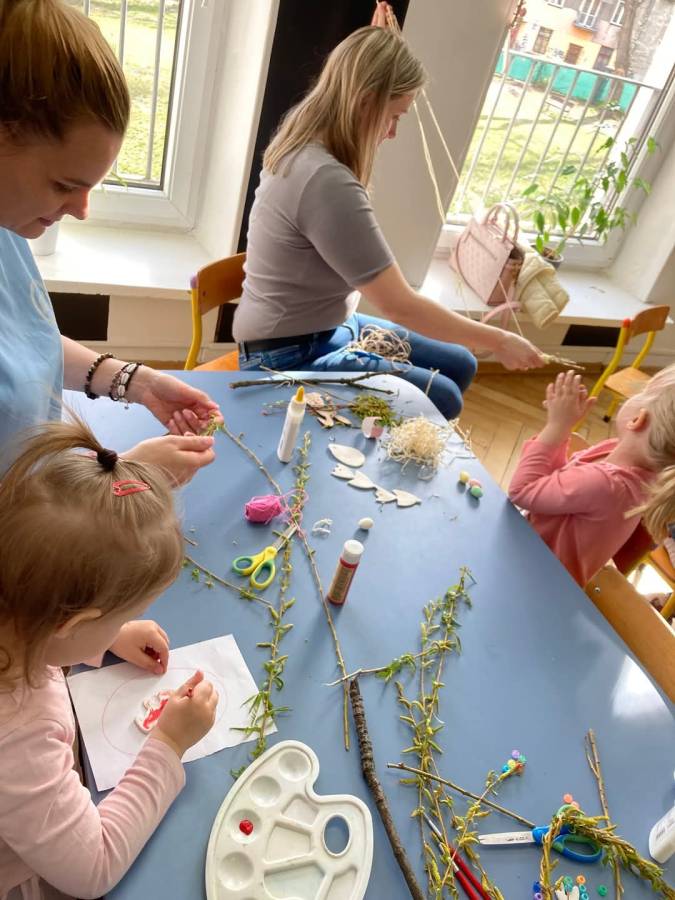 Dziś w Dwójeczkach odbyły się warsztaty Wielkanocne. Wszystko pięknie przygotowane czekało aż zjawią się rodzice z przedszkolakami.
