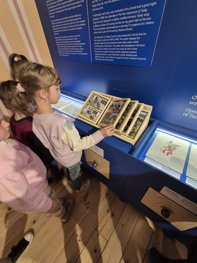 Dziś Kumate Żaby ze swoimi Paniami i oczywiscie naszym Uszatkiem wybrały się na wycieczkę do Muzeum Kinematografii. Była to niezwykła podróż w świat filmu, bajek i magii ruchomego obrazu. Szczególnym zainteresowaniem cieszyła się wystawa poświęcona filmom animowanym i znanym postaciom z bajek. Dziec z zaciekawieniem słuchały opowieści przewodnika, a interaktywne elementy wystawy pozwoliły im aktywnie uczestniczyć w poznawaniu tajników kinematografii. Uszatek był zachwycony widząc swoich bajkowych przyjaciół i swój bajkowy pokój.