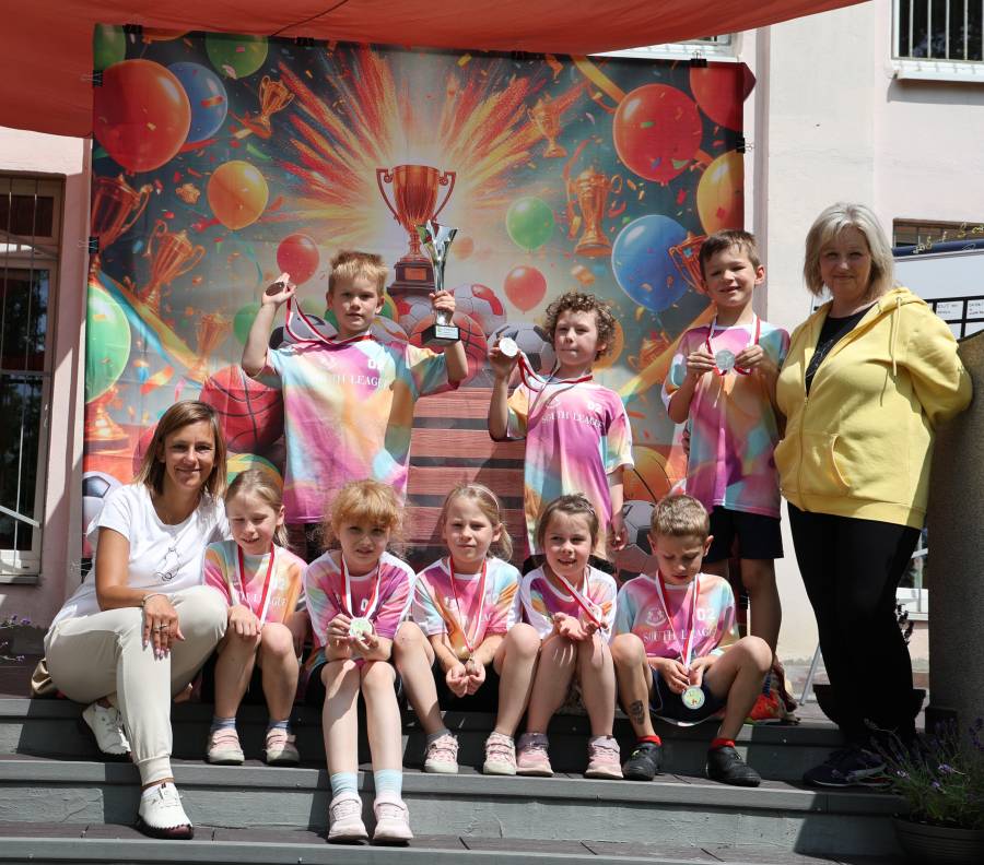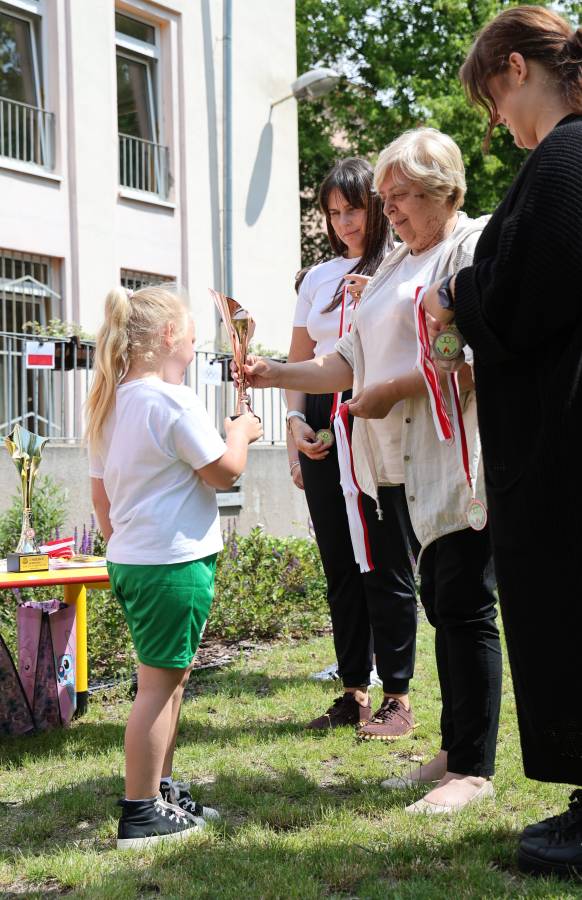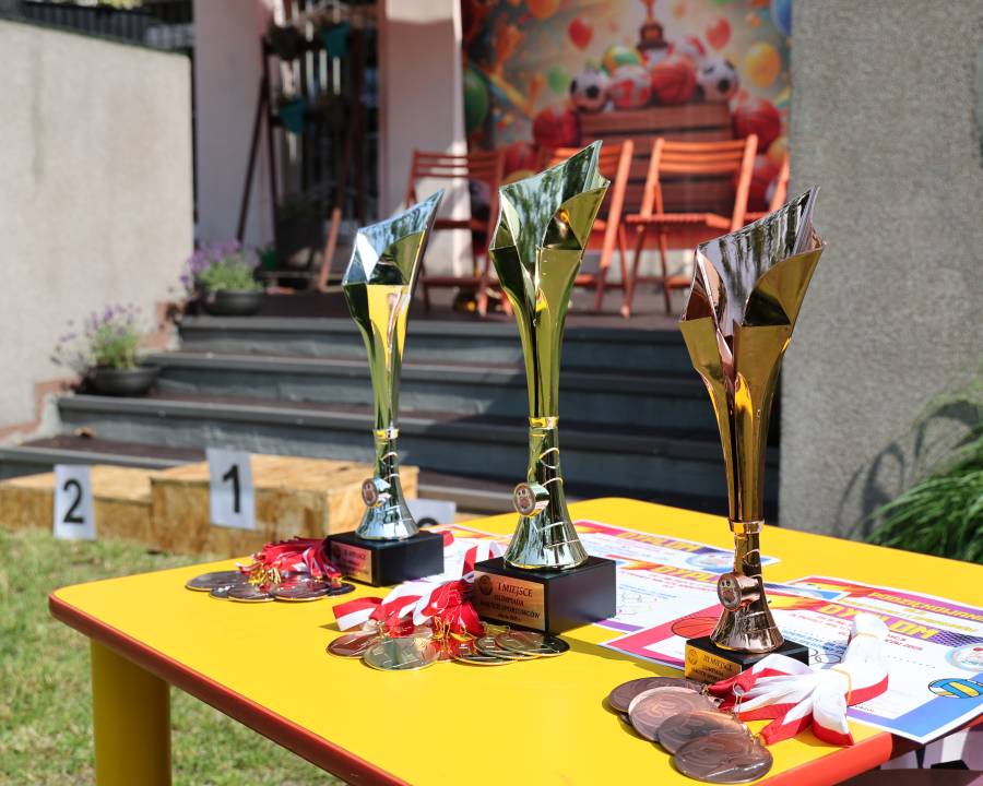 Każdy uczestnik otrzymał medal, a przedszkole super puchar i nagrody, które ufundowaliśmy we współpracy z Wydziałem Edukacji w ramach programu "Promocja Oświaty w Polsce i za granicą".  Nie zabrakło dopingu, o który zadbały nasze przedszkolaki.