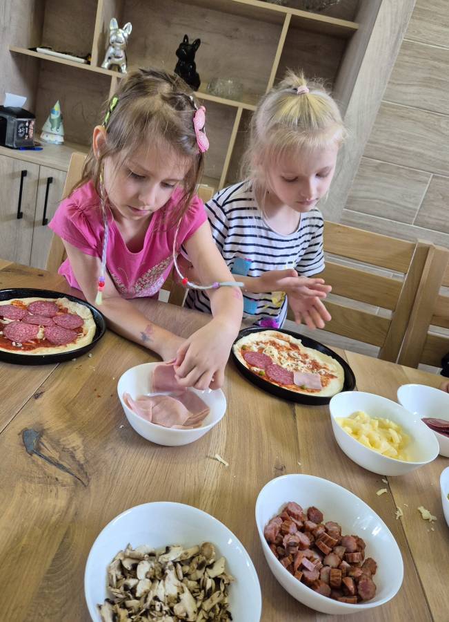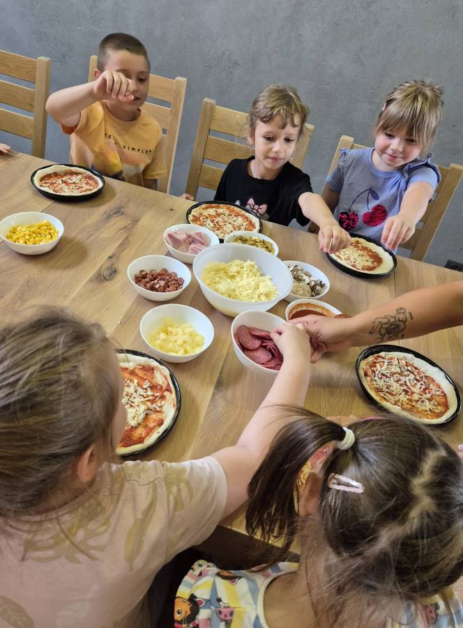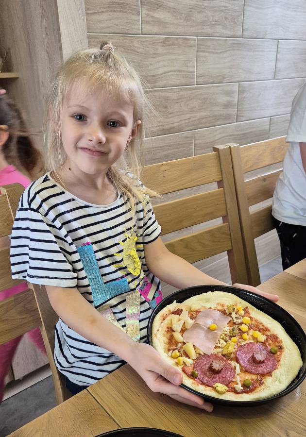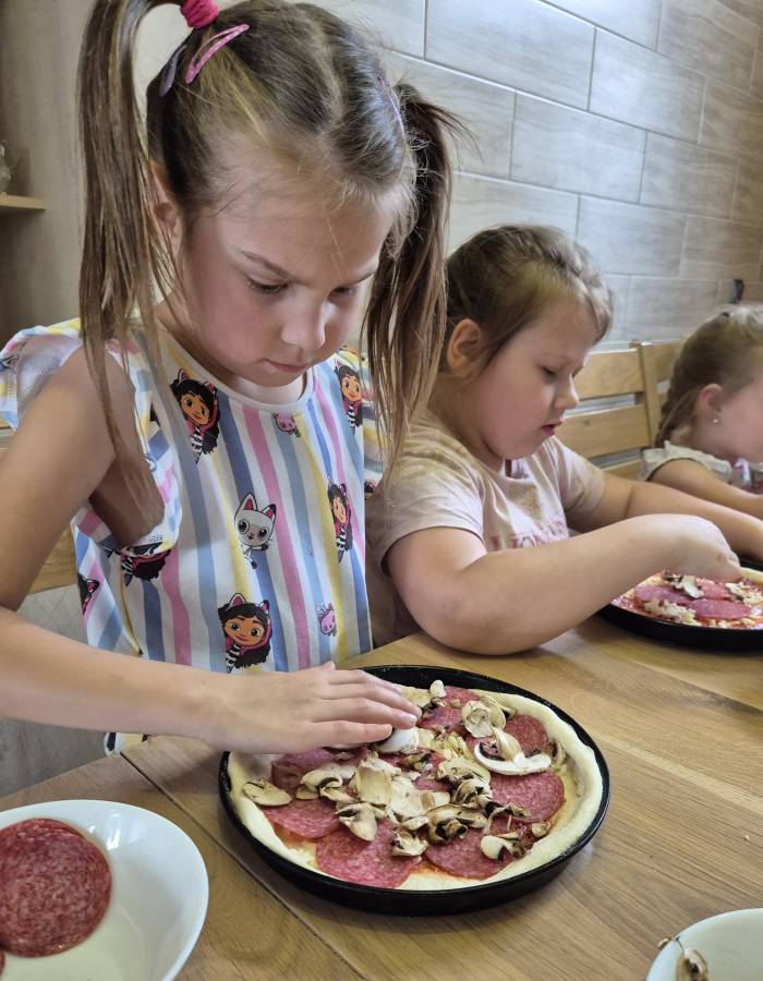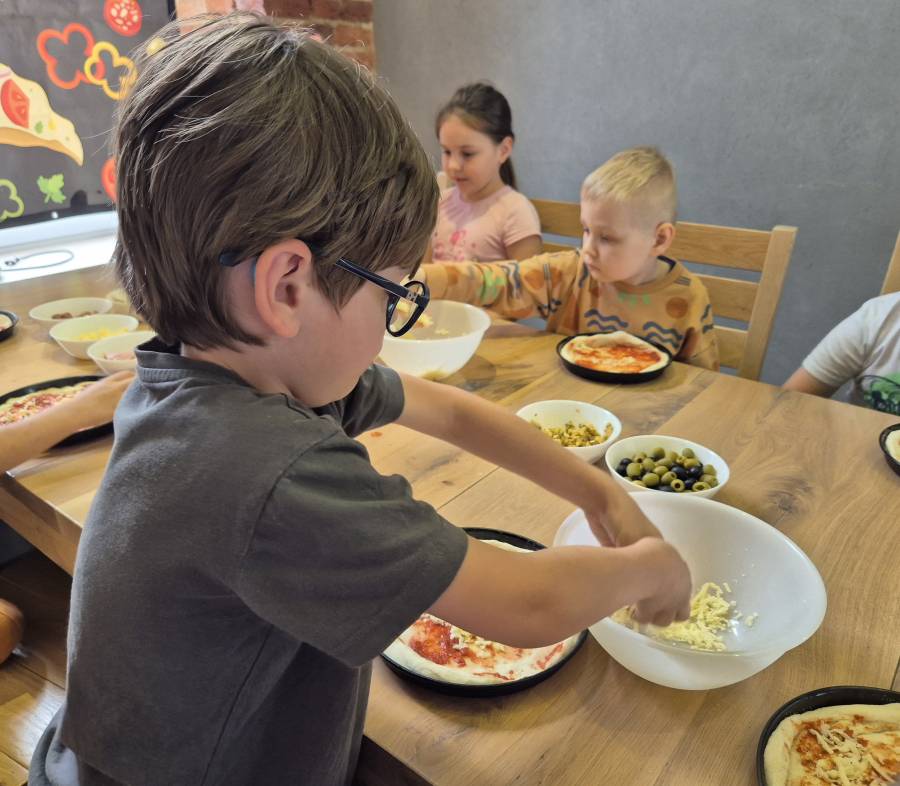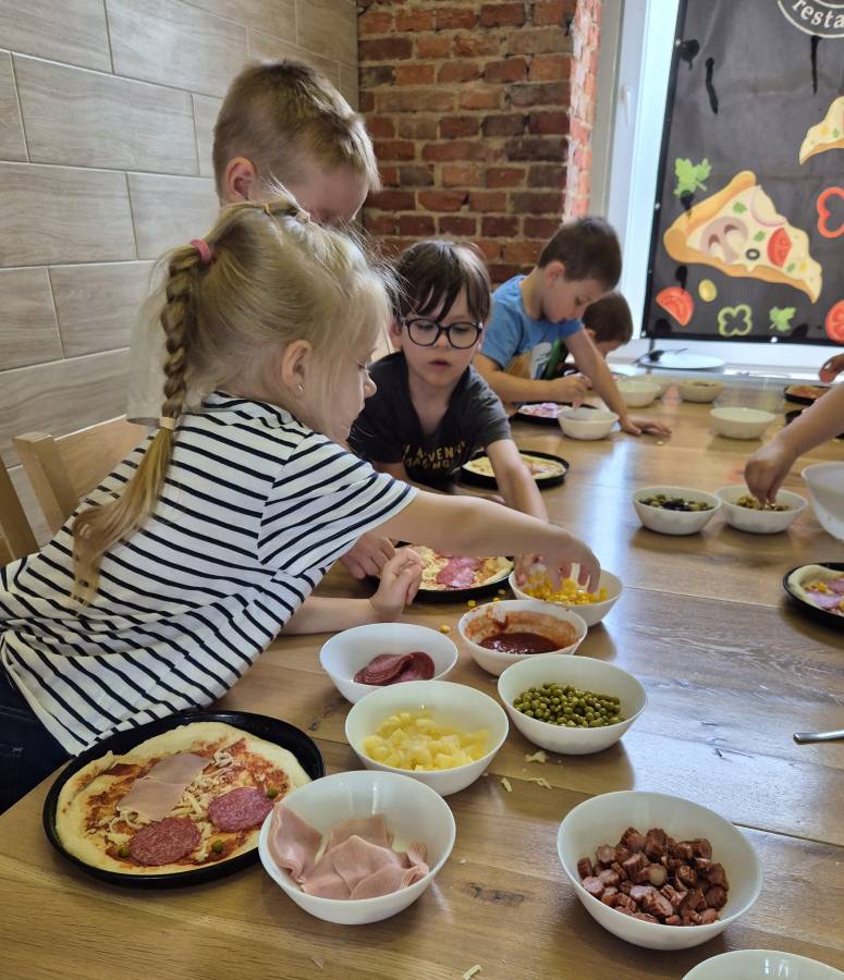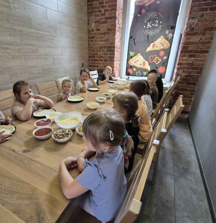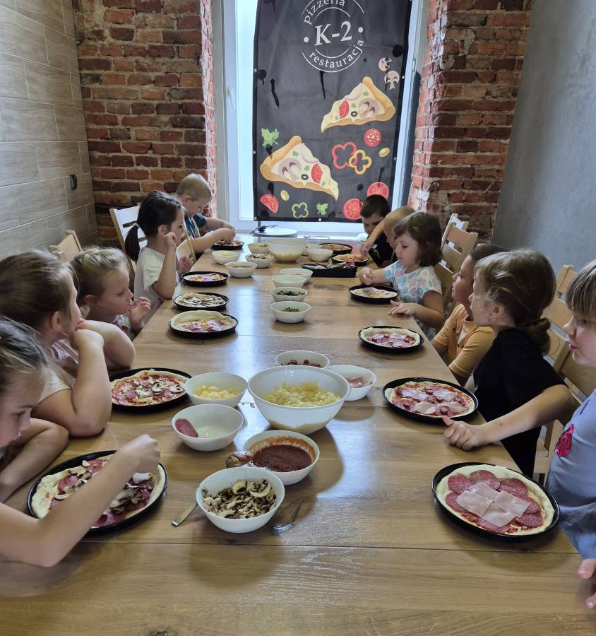 Dziś Kumate Żaby wybrały się na warsztaty kulinarne do Pizzeria K2- zgierska 69. Wyjście ufundowała Pani Dyrektor za zajęcie 1 miejsca w konkursie ciast, który odbył się na Pukniku Rodzinym. Każde dziecko miało okazję dobrać ulubione dodatki i stworzyć swoją wymarzoną pizze. Po upieczeniu każda pizza smakowała wyśmienicie! Dzieci były bardzo dumne ze swoich kulinarnych dzieł. Na zakończenie każdy uczestnik otrzymał pamiątkowy dyplom Szefa Kuchni Pizzerii K2 oraz małą niespodziankę.