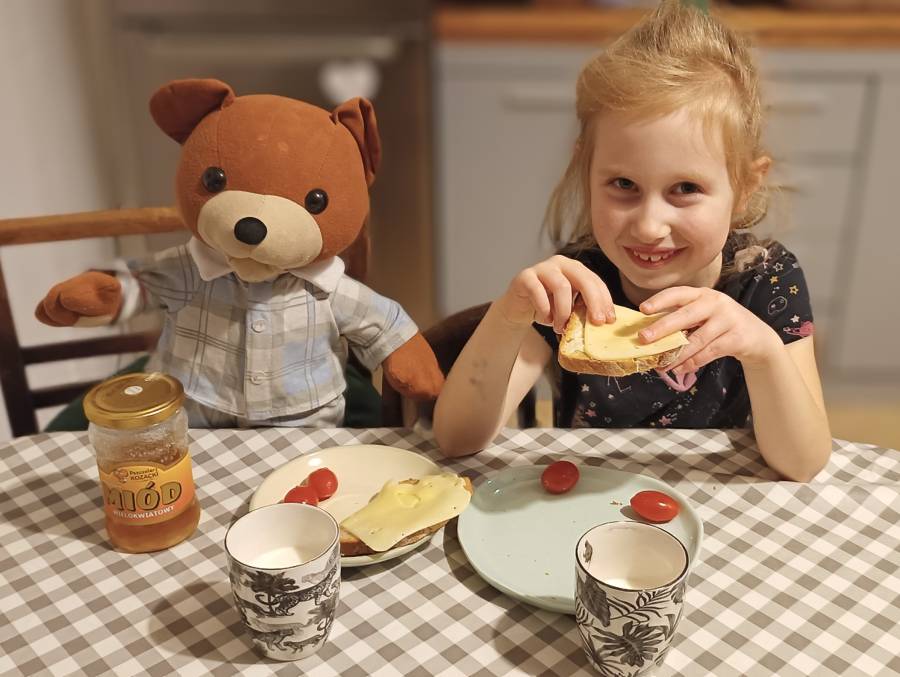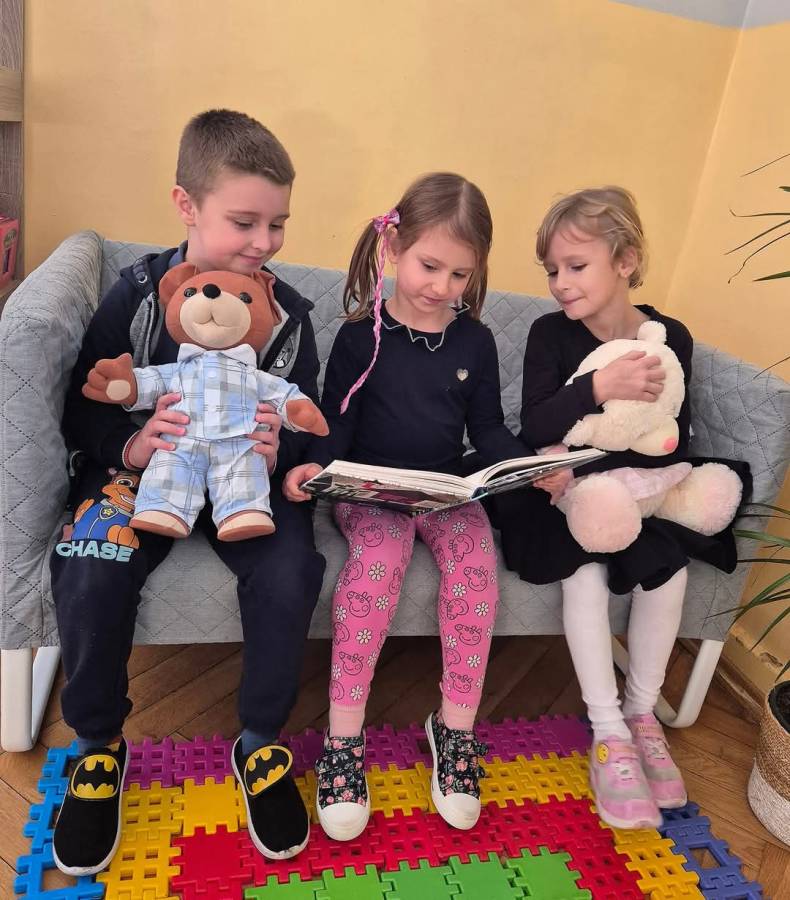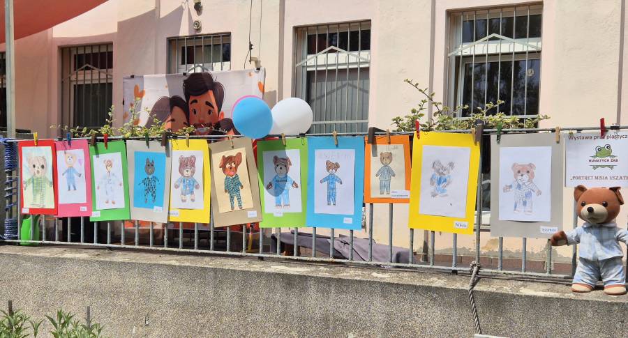 W roku szkolnym 2024/2025 w grupie Kumatych Żab realizowany był projekt, wprowadzony przez Panią Agnieszkę ? W naszych Dwójeczkach mieszka Miś , on do domu pójdzie ze mną dziś? . Celem tego projektu było zabranie Misia Uszatka- Przytulanki przez przedszkolaka do swojego domu od piątku do niedzieli , zaopiekowanie się nim, spędzanie z nim czasu, wspólnie z rodzicami przeczytanie mu bajki na dobranoc oraz wykonanie portretu misia wraz z mamą, tatą lub rodzeństwem. Podsumowaniem projektu była wystawa prac plastycznych ?Portret Misia? , która można było podziwiać na Pikniku Rodzinnym.