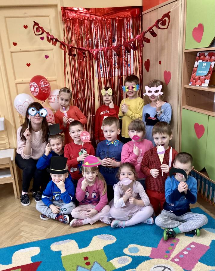 Każda grupa spędzała ten czas ze swoimi Paniami bawiąc się śpiewając, rysując, robiąc pamiątkowe zdjęcia, a wszystko to w pięknych kolorach miłości.