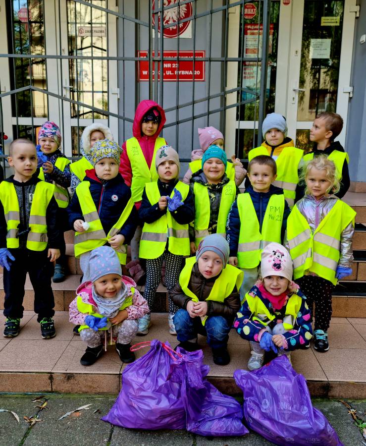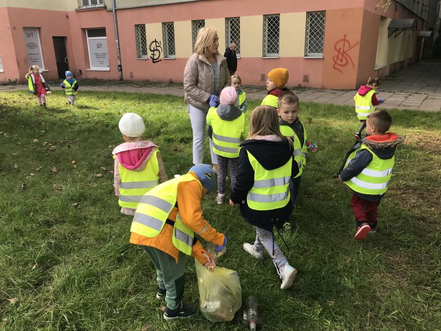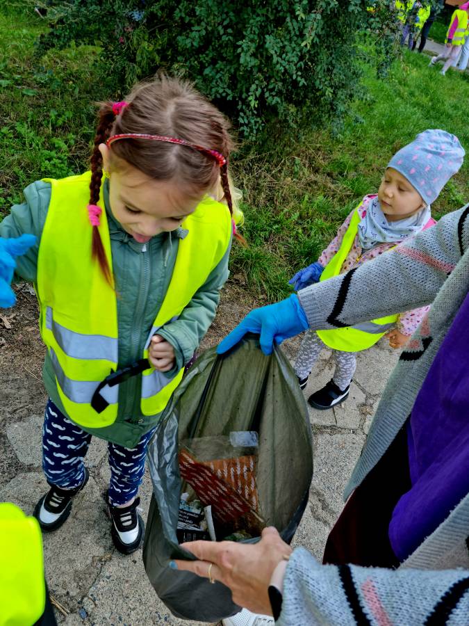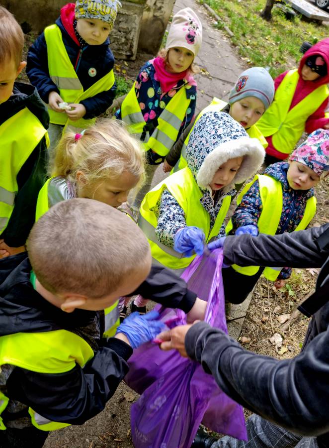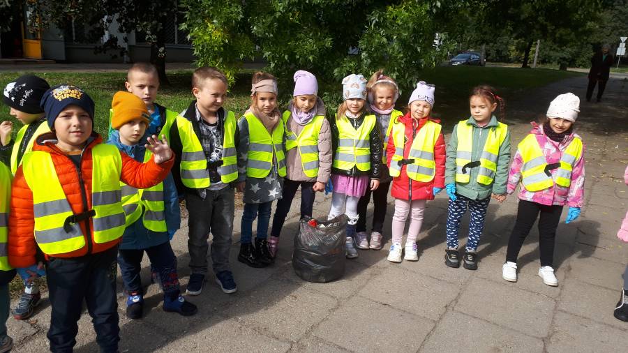 27 września przedszkolaki z grupy 2, 3 i 4 zaopatrzone w worki na śmieci i rękawiczki wyszły posprzątać „nasz kawałek Ziemi”, tym samym wzięliśmy udział w „29 Akcji Sprzątania Świata” , zorganizowanej przez Fundację Nasza Ziemia. Nasze maluszki razem ze swoją Panią uczyły się prawidłowej segregacji odpadówi do odpowiednich pojemników. Wspólnie pokazaliśmy, że nasze przedszkole pełne jest gotowych do działania rąk i zielonych serc, którym bliska jest troska o naszą Planetę.#SSP2022