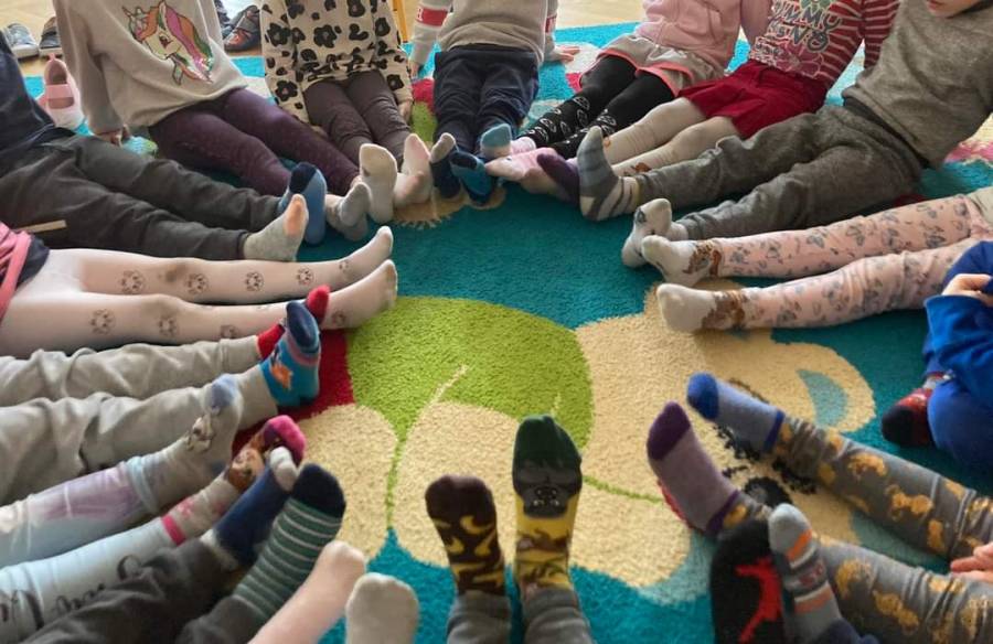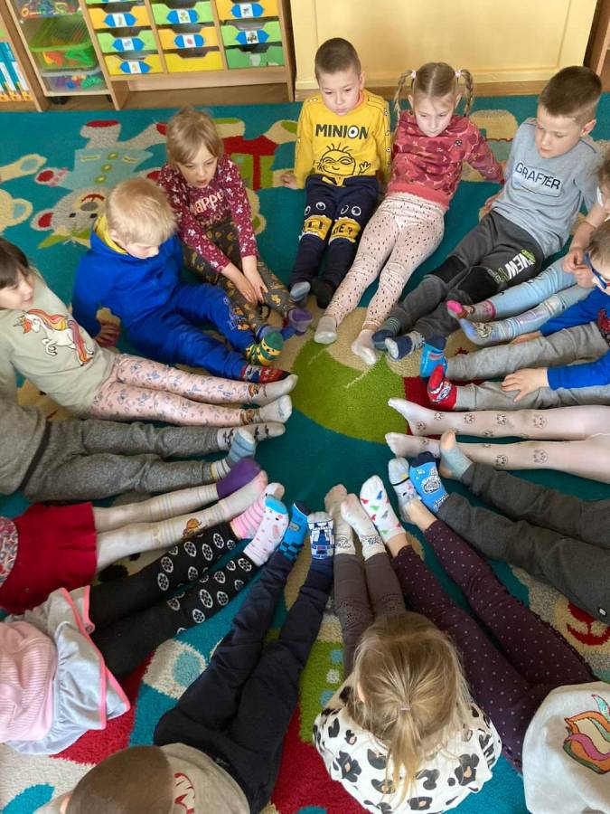 Pierwszy dzień wiosny to również Dzień Kolorowej Skarpetki. W tym dniu dzieci przyszły do przedszkola w skarpetkach nie do pary, na znak solidarności z osobami z Zespołem Downa.