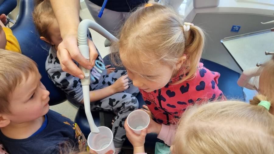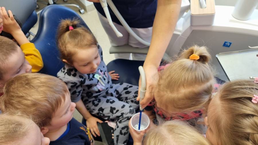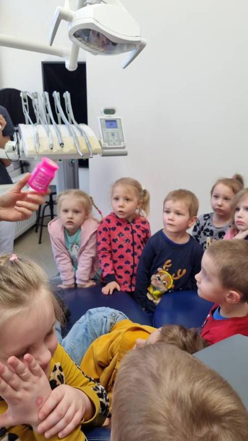 29 marca dzieci z grupy 2 odwiedziły gabinet stomatologiczny "Bielik".Wizyta u dentysty sprawiła im wielką frajdę i pozwoliła przyswoić wiedzę z zakresu dbania o higienę jamy ustnej. Serdecznie dziękujemy za zaproszenie i przeprowadzenie zajęć edukacyjnych dla naszych przedszkolaków.