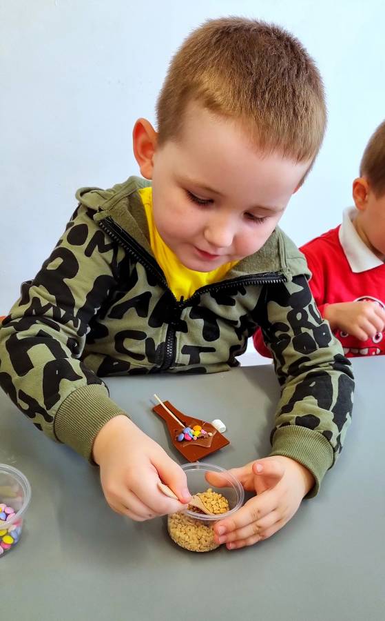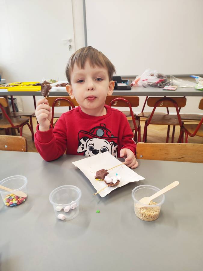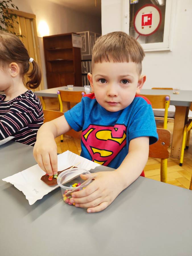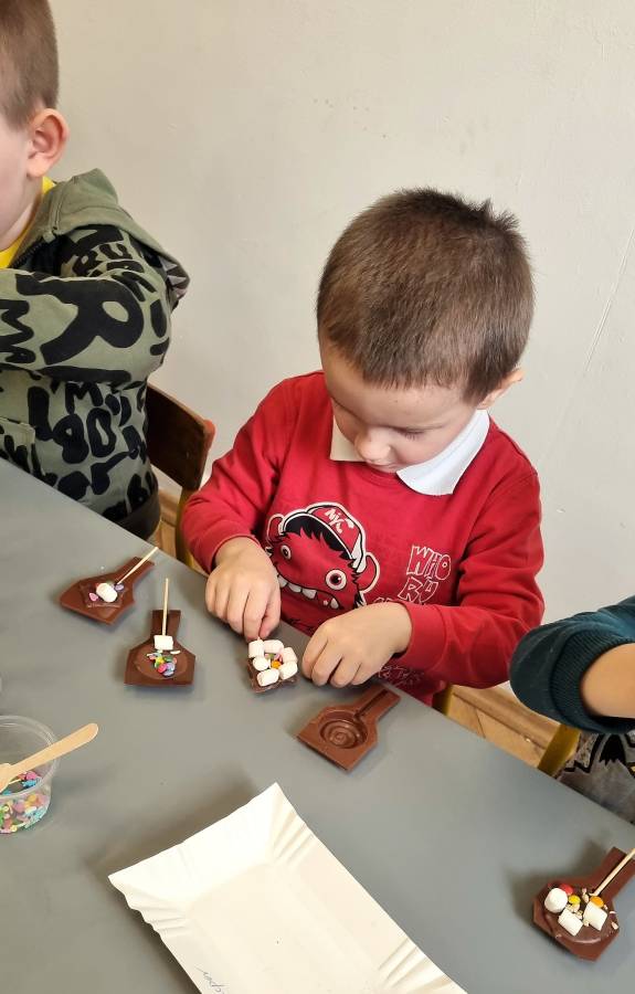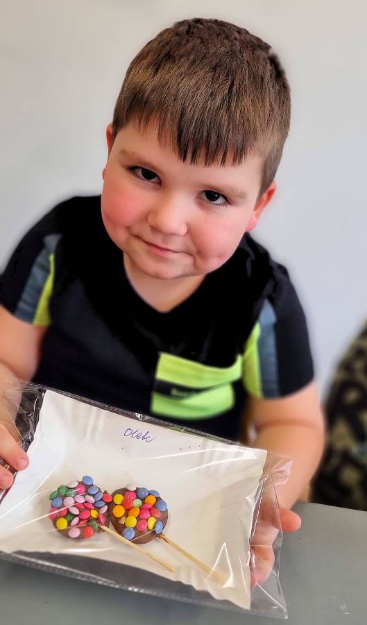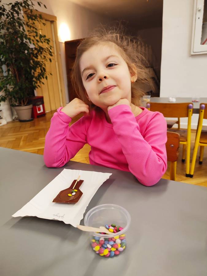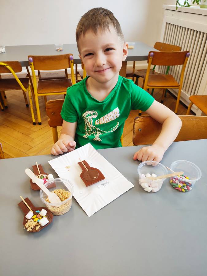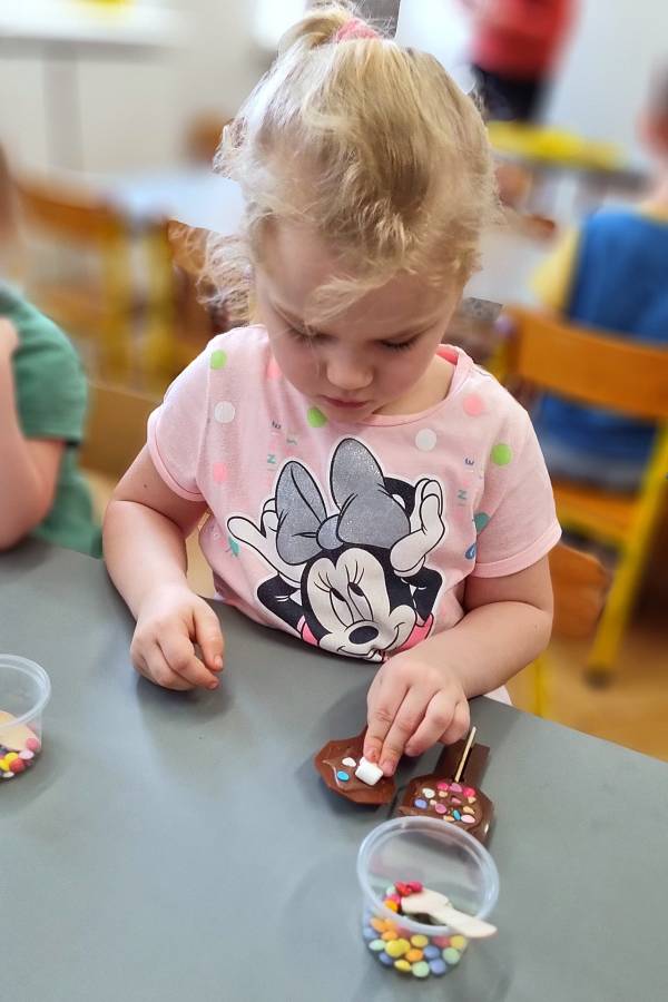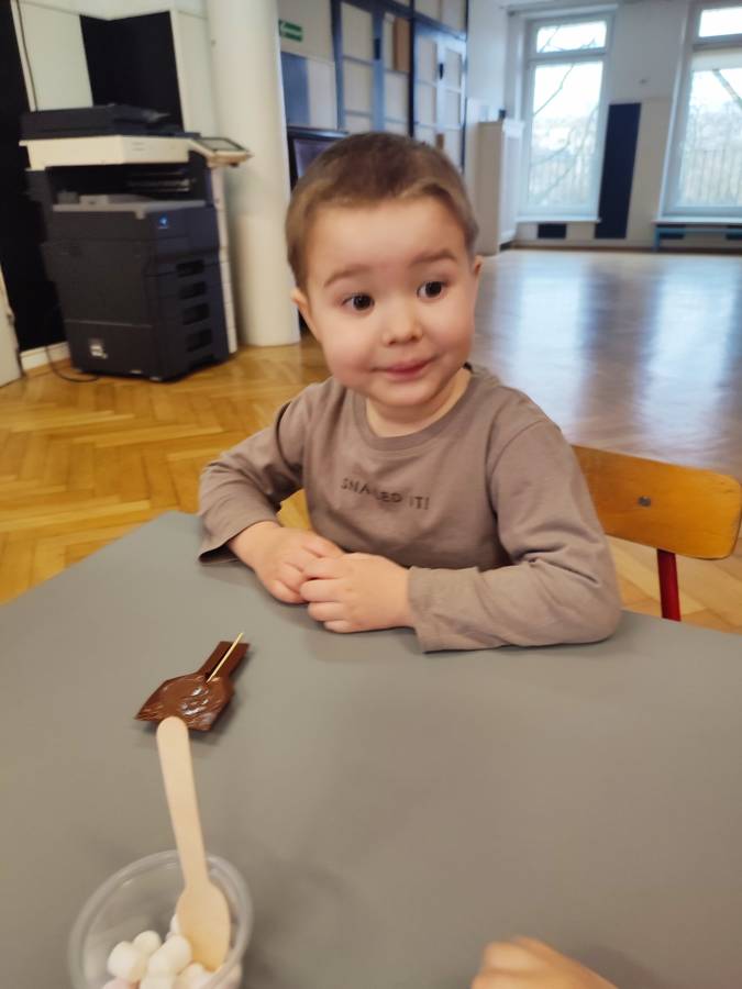 W Dzień Czekolady odbyły się warsztaty czekoladowe. Dzieci dowiedziały się, z czego i jak powstaje ta pyszna slodkość. Następnie przedszkolaki otrzymały formy z plynną czekoladą, wypełniły je kolorowymi ozdobami. Dwie grupy zrobiły pyszne lizaki, a kolejne dwie kolorowe czekolady. Dzieci mogły zabrać swoje słodkie arcydzieła do domu i poczęstować nimi swoich najbliższych.