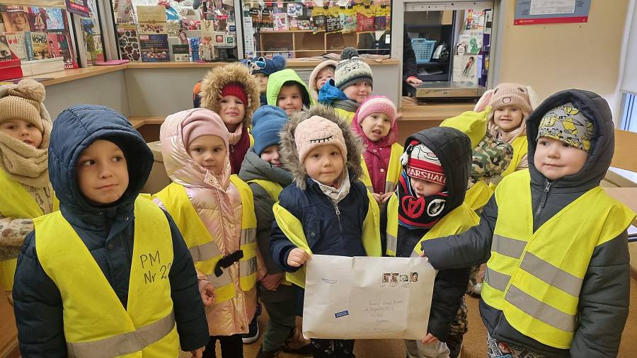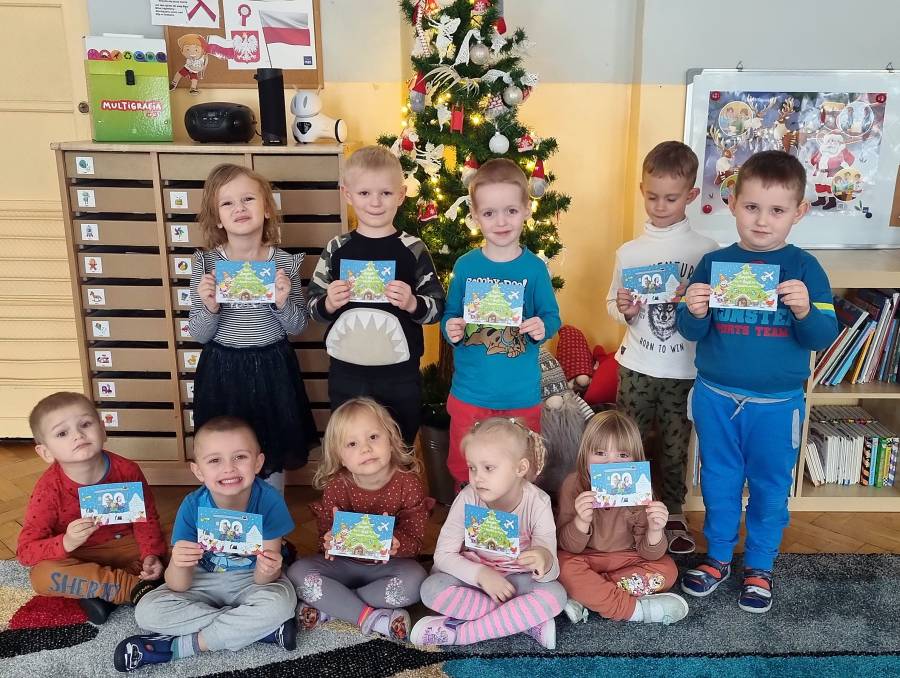 Żeby pokazać jak przyjemne jest wysyłanie i dostawanie kartek, szczególnie w okresie świątecznym, wszystkie grupy przedszkolne, wzięły udział w corocznej akcji IDĄ ŚWIĘTA, NIE O SMS-IE LECZ O KARTCE PAMIĘTAJ!