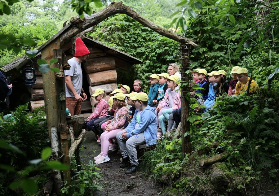 W tym magicznym miejscu dzieci podziwiały kolorowe domki skrzatów, z zaciekawieniem słuchały opowieści Skrzatologa o zwyczajach i życiu tych małych leśnych istot. Na koniec każda Zaba wykonała Motankę - lalkę szczęścia. Wycieczka była nie tylko doskonałą okazją do integracji i wspólnej zabawy, ale również rozwijania wyobraźni i poznawania świata przyrody.