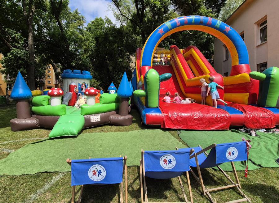 Dzieci miały okazję wyszaleć się na kolorowych dmuchanym zamku oraz zjeżdżalni. Skoki, piruety, wspinaczki ? to był dzień pełen energii i dobrej zabawy. Dziękujemy Fundacji Sport Kids za dzisiejszą atrakcję.