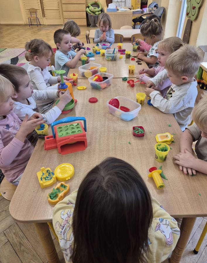 Dziś Kumate Żaby pokazały swoją kreatywność wykorzystując do tego ciastolinę. Maluszki ugniatały, wałkowały, lepiły i tworzyły przeróżne kształty ? od prostych kuleczek i wałeczków, po fantazyjne zwierzątka i ciasteczka. Zabawa ta to nie tylko świetna rozrywka, ale też doskonałe ćwiczenie sprawności paluszków i wyobraźni.