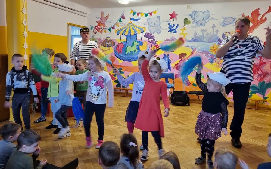 Dziś dzieci razem z Panem Witkiem śpiewając szanty wypłynęły w rejs daleki po morzach i oceanach.