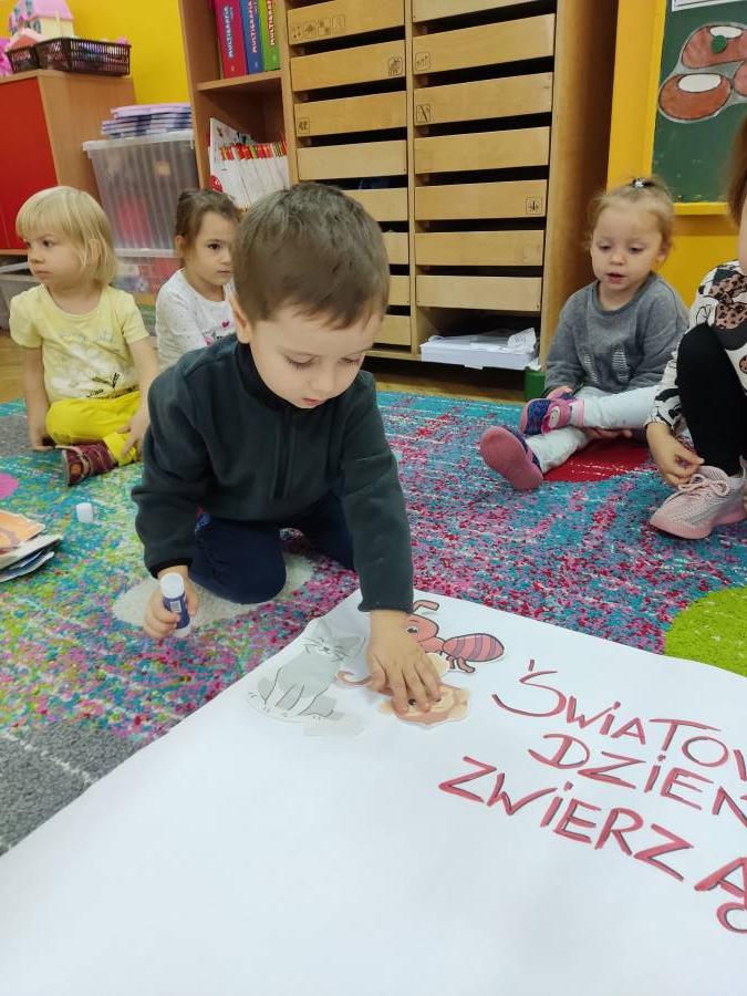 Dziś w grupie maluszków obchodziliśmy nietypowy dzień: Światowy Dzień Zwierząt, wykonaliśmy plakat, bawiliśmy się w naśladowanie różnych zwierząt oraz kolorowaliśmy różne szablony.Kochajmy wszystkie zwierzaki.