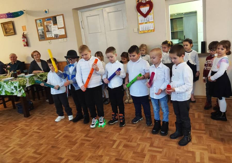 W styczniu Kumate Żaby ze swoimi Paniami wybrały się do Domu Dziennego Pobytu, zaprezentować Seniorom program artystyczny przygotowany na uroczystość Dnia Babci i Dziadka, podczas którego zaśpiewały piosenki i recytowały wiersze. Na koniec chłopcy zagtali Sto lat, co wywołało wśród Seniorów wzruszenie.
