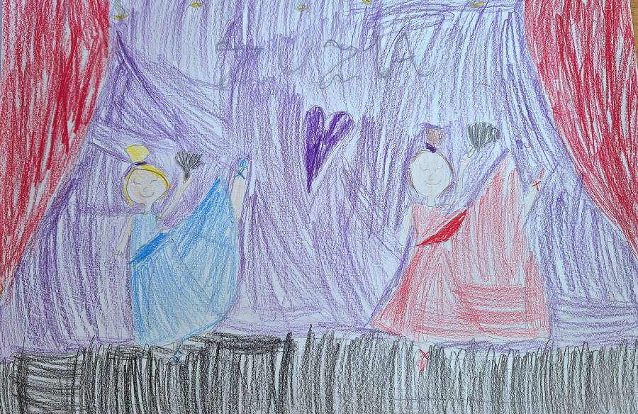 Dziś w przedszkolu odwiedził nas balet z tańcami z różnych stron świata. Dzieci chętnie uczestniczyły w zajęciach i uczyły się tańczyć. Zajecia były dobrą inspiracją na stworzenie rysunku przez Żabkę Zuzę.