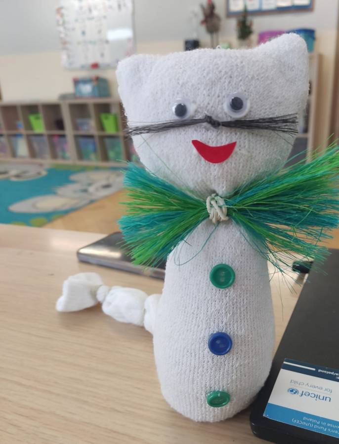 W lutym w grupie Zwinnych Kotów odbyły się warsztaty, na których z okazji Międzynarodowego Dnia Kota, dzieci wykonały ze skarpet właśnie tego zwierzaka. Pod czujnym okiem Pań, świetnie poradziły sobie z zadaniem, a na koniec wszyscy nazwali swoich kocich przyjaciół pięknymi imionami.