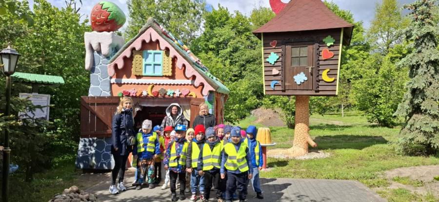 Dzisiaj dzieci z grupy Zwinne Koty wybrały się na długo wyczekiwaną wycieczkę do Dinopark Kołacinek Mimo chłodu na dworze, atmosfera była gorąca z wrażenia jakie zrobiły na dzieciach ogromne figury dinozaurów. Przedszkolaki z zainteresowaniem słuchały opowieści o ich prehistorycznym życiu przekazywanych przez przemiłą Panią przewodnik. Dzieci dowiedziały się co dinozaury jadły, dlaczego jedne były kolorowe, inne nie, jak się broniły i dlaczego tych pięknych i tajemniczych stworzeń już z nami nie ma. Okazało się, że niektóre dzieci posiadają dużą wiedzę o życiu dinozaurów i wiele z nich potrafią nazwać. Drugim etapem wycieczki były odwiedziny w Bajkowej krainie. Przepiękne makiety przedstawiające sceny i postacie z wielu znanych bajek wzbudziły zachwyt dzieci i nauczycielek. Wyprawę zakończyła wspaniałą zabawa w tamtejszym figloraju. To był bardzo miły i pełen wrażeń dzień w grupie Zwinne koty