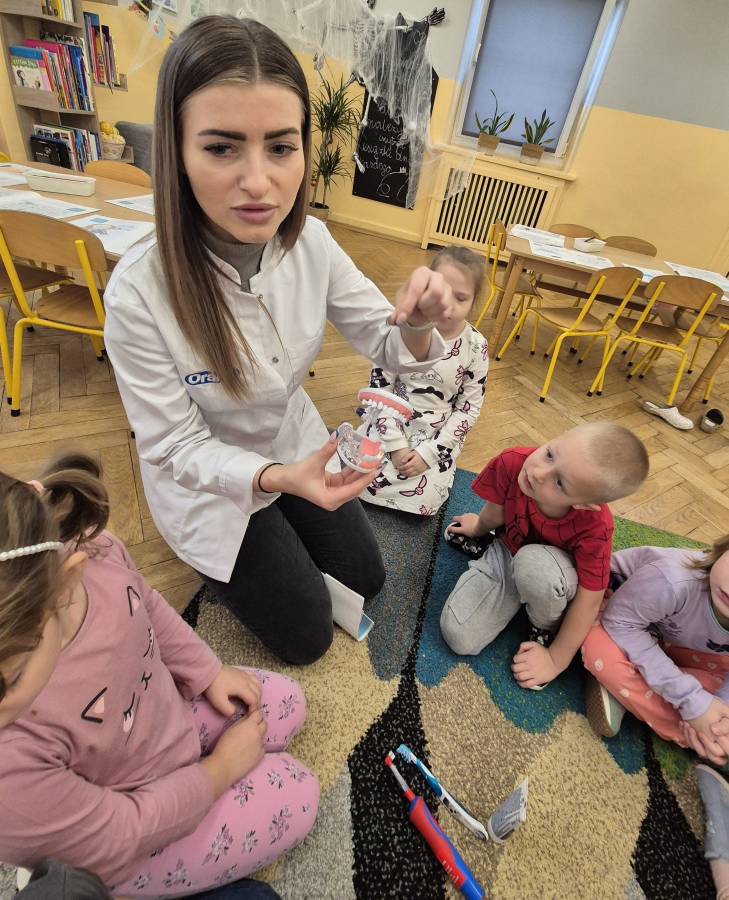 W ramach akcji Czysciochowej Akademii Rossmann Polska - Niesamowity świat higieny jamy ustnej w listopadzie Kumate Żaby odwiedziła Pani higienistka Marta, która przypomniała przedszkolakom jak ważne jest codzienne mycie zębów.