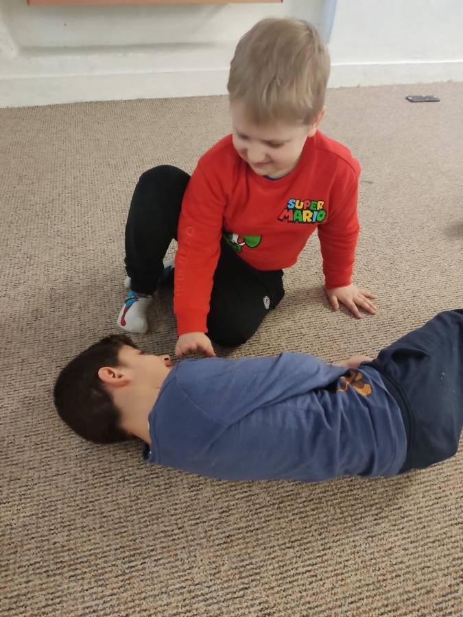 W dniu dzisiejszym grupa Zwinne Koty w ramach współpracy z Szkołą Podstawową nr 24 uczyła się jak udzielać pierwszej pomocy. Dzieci poznały jak reagować kiedy ktoś zemdleje oraz ćwiczyły pozycję boczną ustaloną.